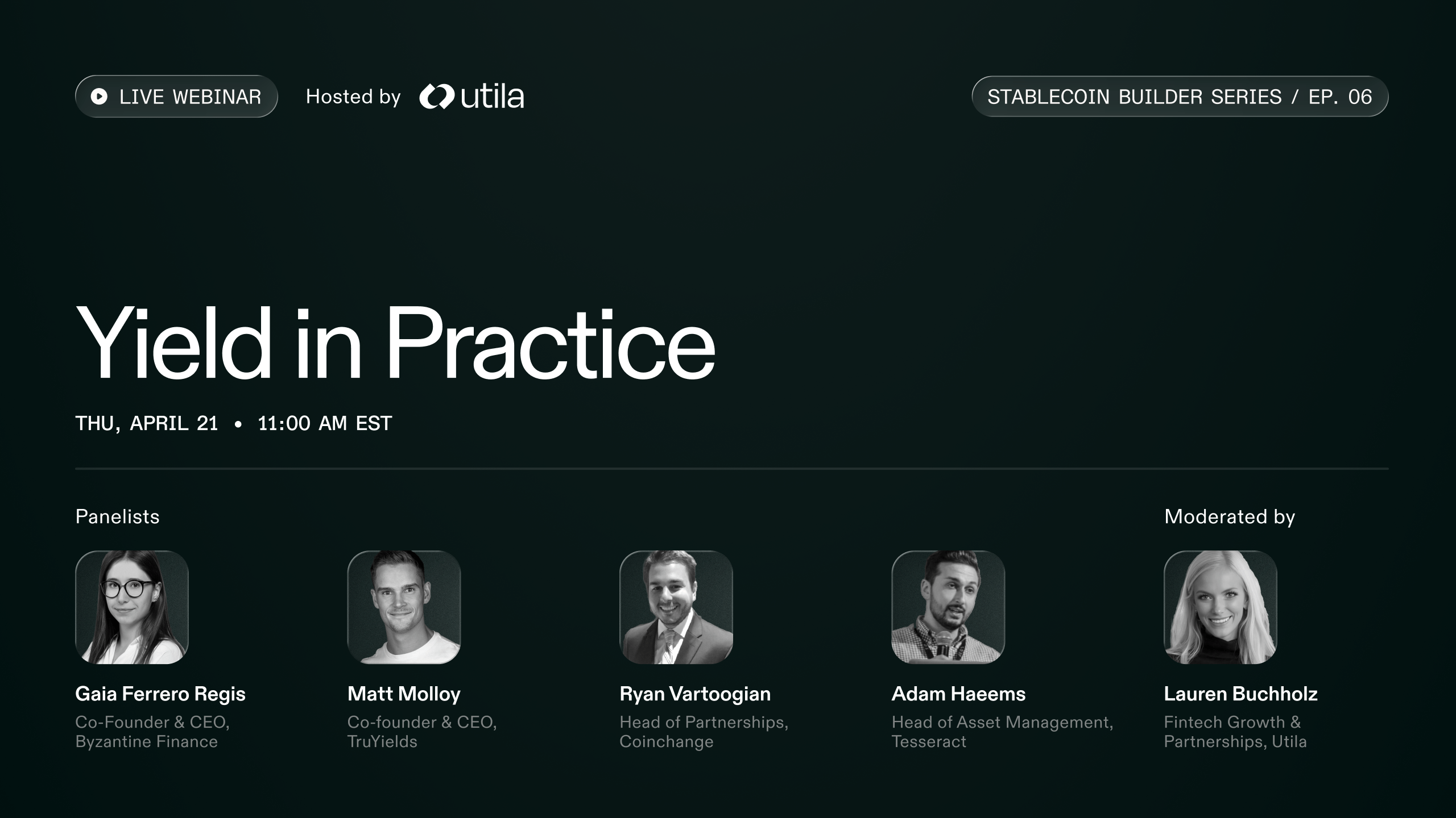 Beyond the panel, you'll have a chance to ask questions directly to the teams building the infrastructure that many yield products will run on.